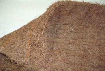 Tapis de diverses fibres végétales constituant une bonne couverture végétative et apportant une protection du terrain contre l'érosion due à la pluie et protégeant des variations thermiques. Ces couvertures sont biodégradables à court, moyen ou long terme, selon la nature des fibres entrant dans leur composition. Elles s'utilisent en protection d’ensemencement exposé à l'érosion. Fertilisation du sol par la dégradation des fibres. |