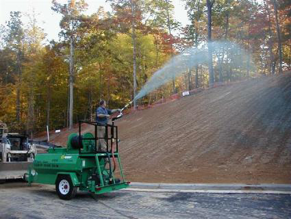 Mulchs appliqués par projection hydraulique à l’aide d’un canon à matières denses pour la réalisation d’engazonnement (hydroseeding) ou de protections contre l’érosion (hydromulching) sur de grandes surfaces ou des zones difficilement accessibles aux méthodes traditionnelles.