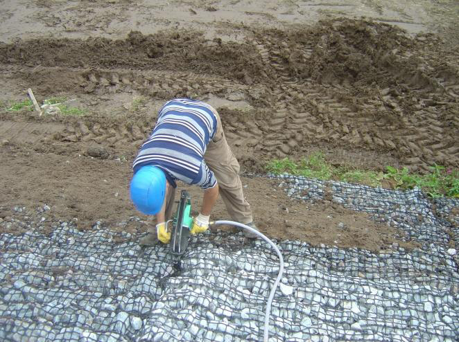 Grâce à la faible ouverture des mailles ils peuvent être remplis avec de petits matériaux (30 à 50 mm) conservant ainsi une très grande souplesse. Ils peuvent être utilisés, seuls, en superposition ou assemblés entre eux pour former des matelas. L’assemblage se fait par ligature ou agrafage mécanique. Cela permet de réaliser des matelas de la dimension souhaitée sans nécessiter de découpe. Ces matelas de gabions tubulaires constituent une couverture continue beaucoup plus résistante aux fortes sollicitations du fait du confinement très efficace des matériaux pierreux de remplissage et de la petite taille des compartiments, (cellules de 0.5 à 0.7 m² pour 2 m² pour les gabions matelas en grillages métalliques tissés).
