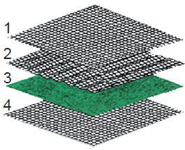 Livrés en rouleaux de 2 m de large pour 17 m de long. Structure tridimensionnelle constituée de 3 grilles synthétiques dont une ondulée, le tout lié mécaniquement pour former un matelas tridimensionnel de 17 mm avec un remplissage de 270 g/m² de fibres de polypropylène vertes. La tension tangentielle admissible, sans végétation, est d’au moins 191 N/m² pour une durée de crue de 2 heures. (vitesse de 3.8 m/s pour tapis non végétalisé et 7.6 m/s une fois végétalisé).