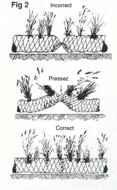 Il est très important de créer un bon contact entre le boudin et le sol environnant. Lors de la préparation, on enlévera les pierres et les branches sous l'emplacement des boudins afin d’éviter des zones de lessivage.