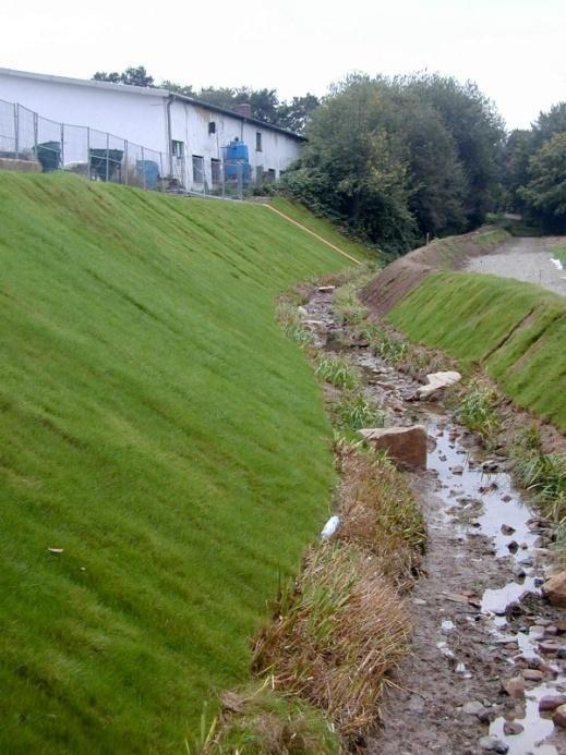 Après l’installation des géonattes végétalisées d’hélophytes, veillez à arroser la partie au dessus de la ligne d’eau jusqu’à ce que l’enracinement soit fait. Si les géonattes végétalisées sont installées en association avec des fascines de coco (boudins), les géonattes doivent recouvrir le haut des boudins de coco afin que les racines des plantes puissent s’enfoncer directement dans les boudins de coco et assurer une liaison sécurisée. La « couture » avec des cordelettes entre le géofilet (enveloppe) des boudins de coco et les pieux est aussi nécessaire pour solidariser les géonattes végétalisées, les boudins de coco et la berge.