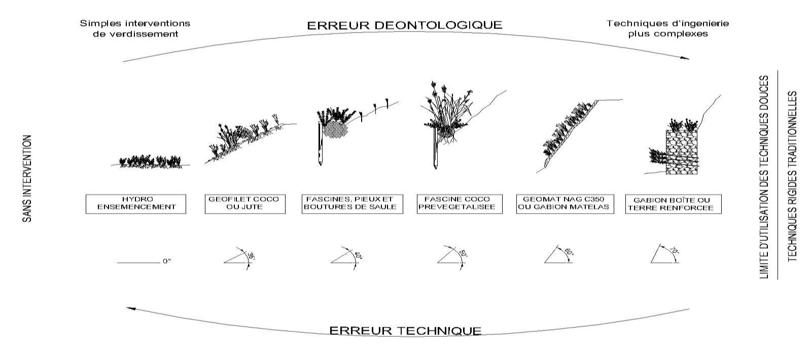 Ainsi, s’il est suffisant d’utiliser un hydro-ensemencement ou un géofilet en coco ou en jute, utiliser alors un géomat ou des gabions surdimensionnés, serait une erreur déontologique.