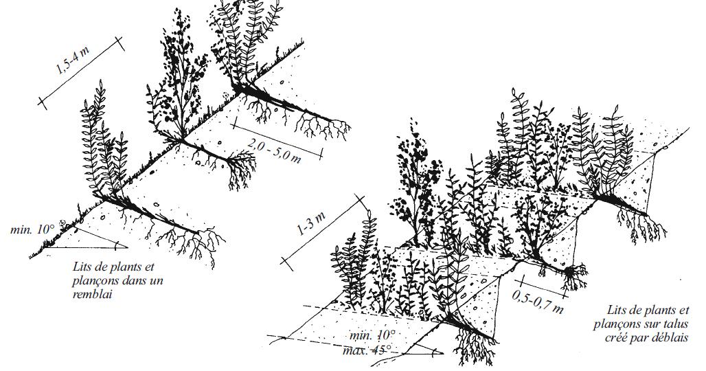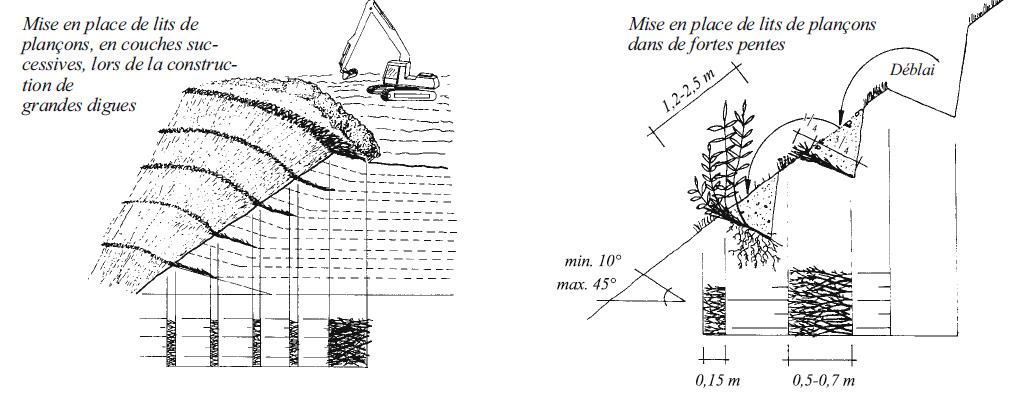 Dans les sols compacts on utilise des branches plutôt courtes (env. 60 cm) alors que dans les sols meubles et remblayés, des branches plutôt longues (2-4 m) sont privilégiées.