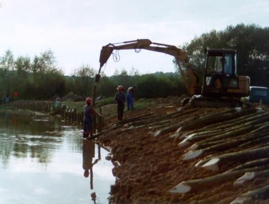 Ensuite, au niveau de la ligne des eaux moyennes, on excave de petites cuvettes dans lesquelles les fascines seront imbriquées les unes dans les autres.