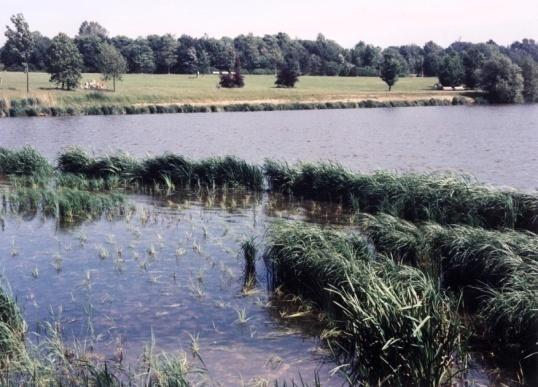 Les zones de berge peu profondes présentent des conditions optimales de croissance de toutes les espèces d’hélophytes (+ /- 0 cm; soit directement sur la ligne d’eau).