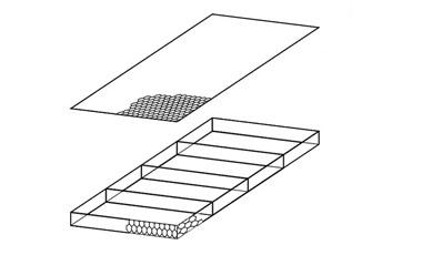 Parallélépipède rectangle de 50 cm d’épaisseur, d’une largeur de 1.5 ou 2 m habituellement et de 3, 4, 5 ou 6 m de long en grillage métallique double torsion, compartimenté tous les mètres par des diaphragmes renforcés en tête. Ce renfort permet un agrafage beaucoup plus soigné et rapide du couvercle. Le couvercle est indépendant.