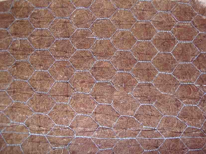 Bionatte avec 450 ou 750 g/m² de fibres coco aiguilletées renforcée par un petit grillage métallique galvanisé à maille hexagonale de 25 mm et d'un diamètre de fil de 0,8 mm. Utilisés comme barrière pour les petits animaux fouisseurs et pour la protection durable de talus très pentus et rocheux qui ne permettent pas la mise en place de terre végétale pour engazonnement.