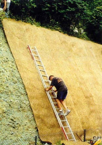 Rockmat : Bionatte en fibres de coco associée à un petit grillage métallique anti-rongeur triple torsion.
