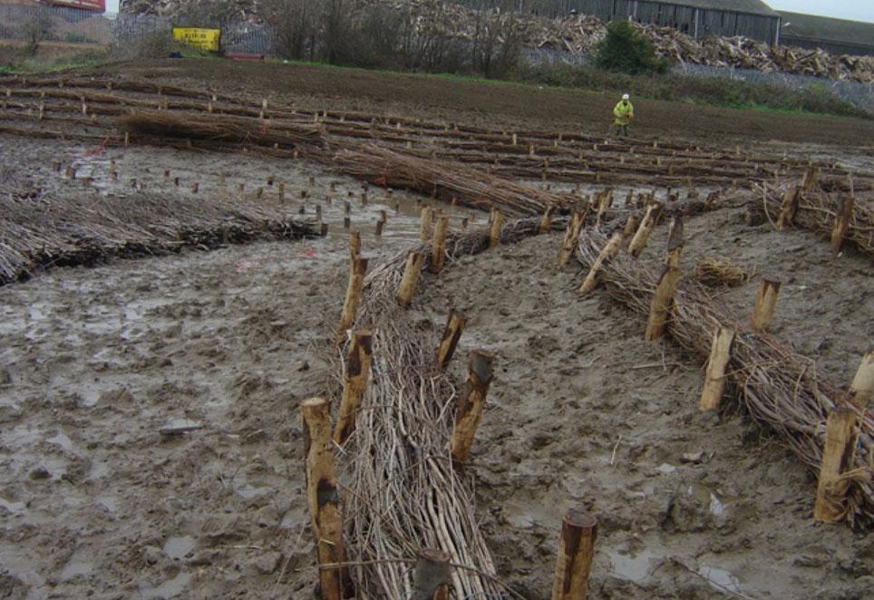 Création ou renforcement de ripisylve : confortement de pied de berge par fascine (en fagot ou branches libres) ou tressage.